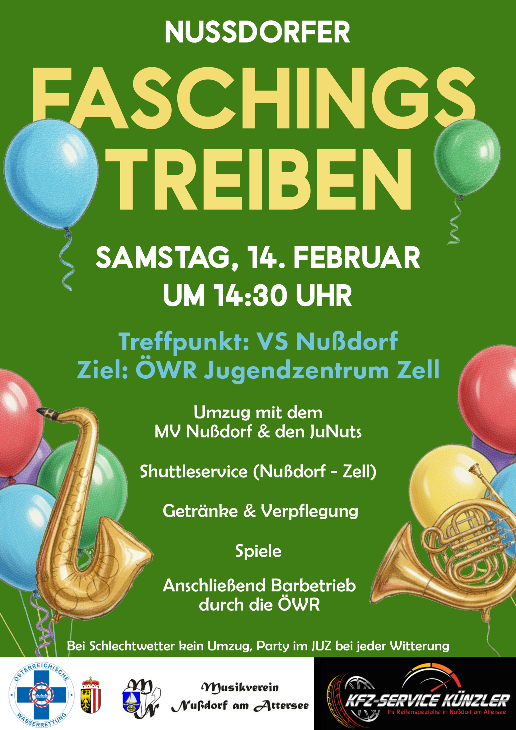 Faschingsumzug 2026 Feb. 9, 2026 Am Faschingssamstag, den 14. Februar findet unser Faschingsumzug statt. Wir freuen uns auf Euch!